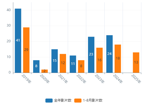 引进片破亿数据图(2019-2025年)单位:部